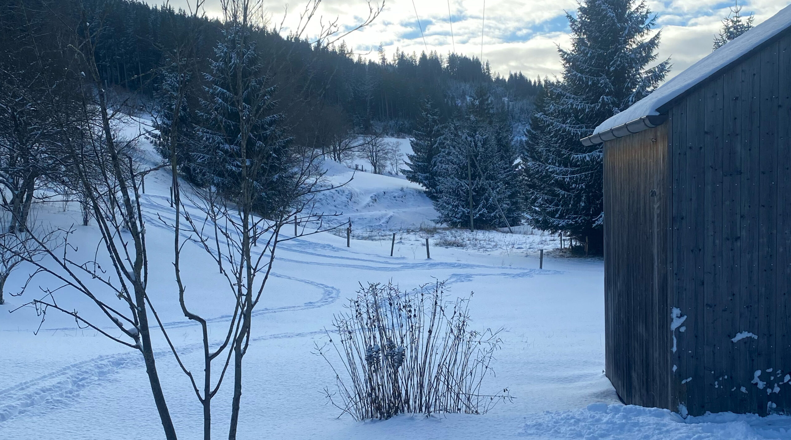 Slider_Winter_2 Ferienhaus am früheren Seilerhansenhof im Schwarzwald, Blick auf den winterlichen Garten